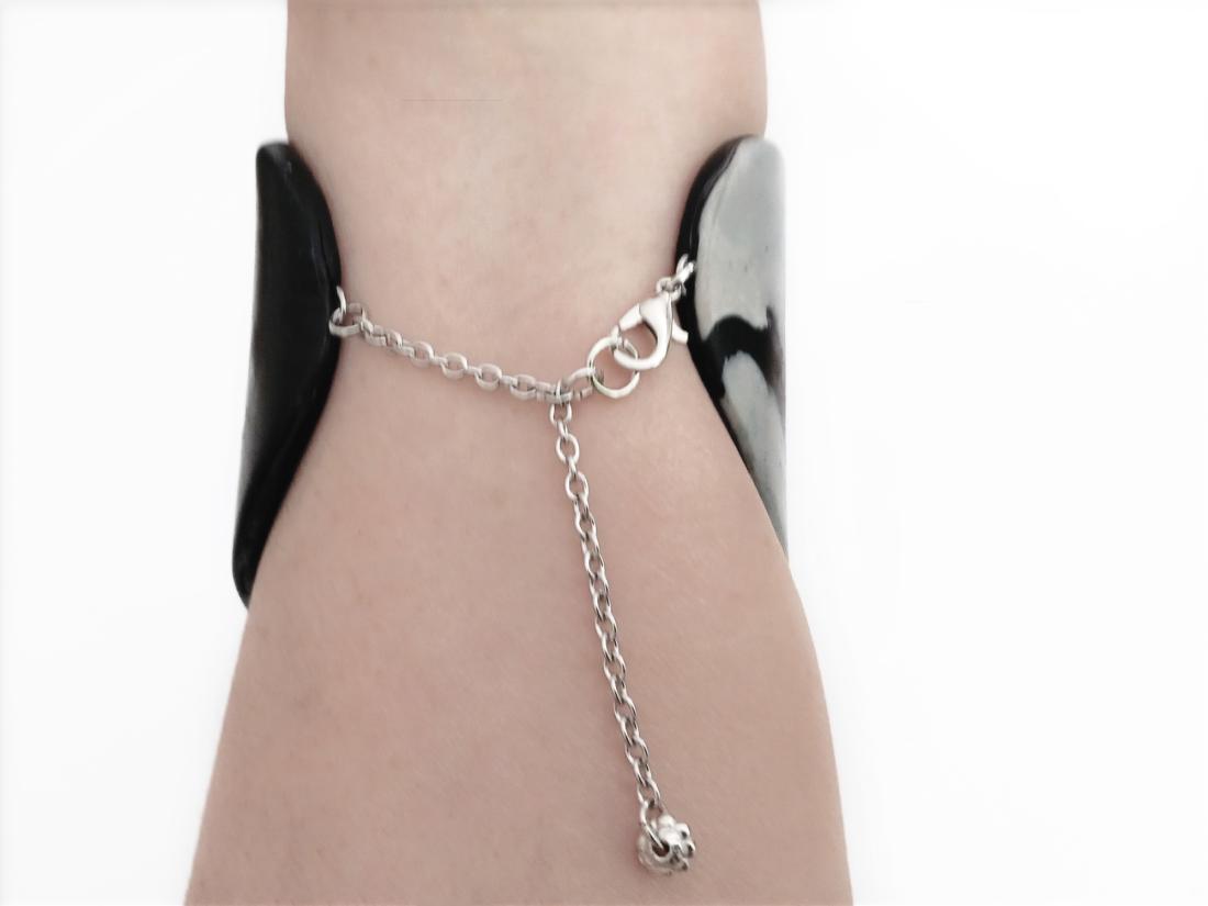 Fermoir Pratique : Équipé d'un fermoir mousqueton et d'une chaînette d'extension en acier inoxydable, ce bracelet s'ajuste facilement à des poignets de 22 cm.